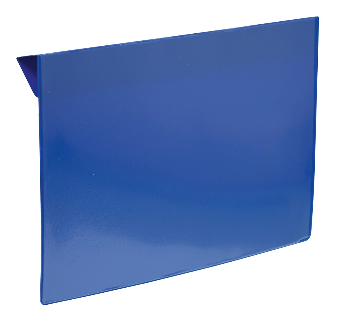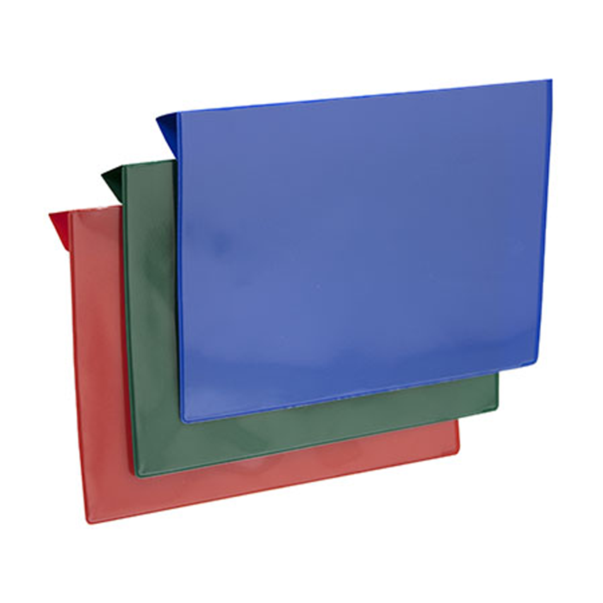 Ficka i hårdplast med formpressat övervik. Genomskinlig plastficka på framsidan som skyddar etiketterna mot smuts och slitage.