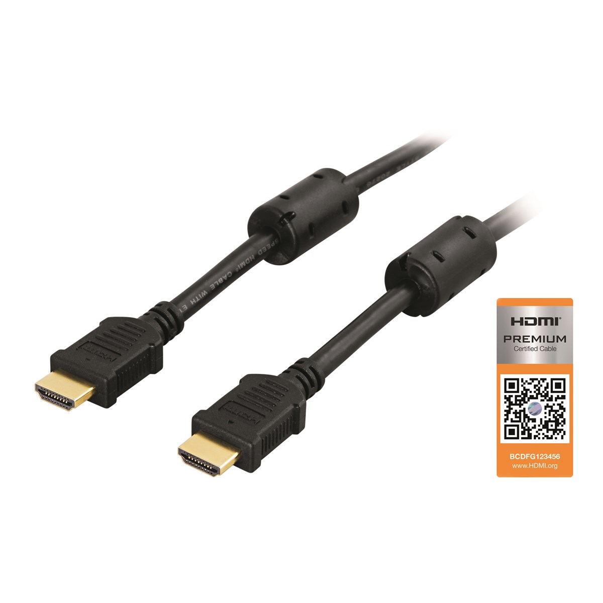 Premium High speed med Ethernet, 4K och UltraHD i 60 Hz. Guldpläterade kontakter. 19-stifts typ A hane/hane. Svart..
