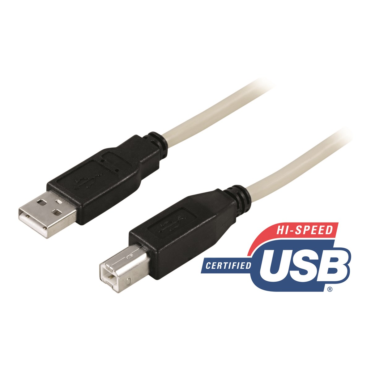 Används mellan dator och hubb, skrivare, skanner etc. Certifierad till 2.0. 4-stifts A hane/B hane. Beige.