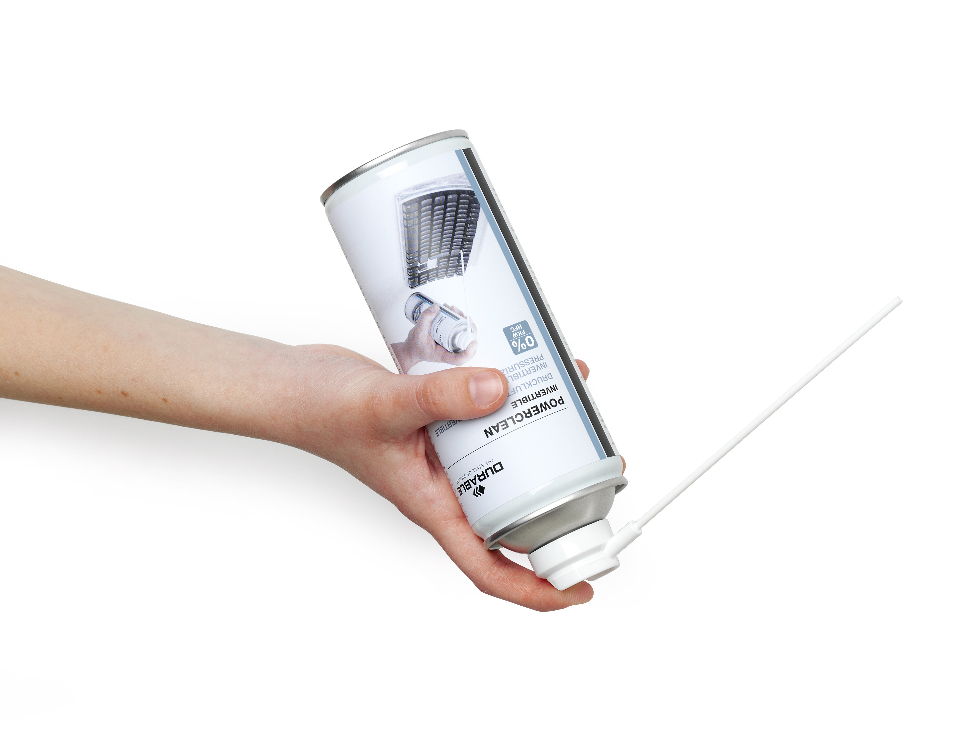 För rengöring av svåråtkomliga eller känsliga ytor t.ex. skrivare, tangentbord samt foto- och filmkameror. Med förlängningsrör för precision vid sprayning. Flaskan kan användas i valfri vinkel. Brandfarlig drivgas.