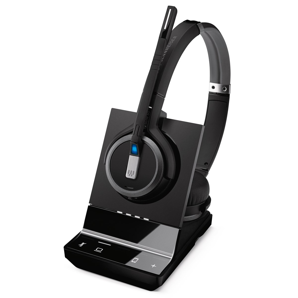 Dubbelsidigt trådlöst DECT-headset med anslutning till softphone/pc. Super wideband-ljud, ett system med dubbla mikrofoner, noise cancelling och steroljud ger överlägset och exceptionellt ljud. Säkerhetsfunktion som håller konversationerna konfidentiella. 2 års garanti.