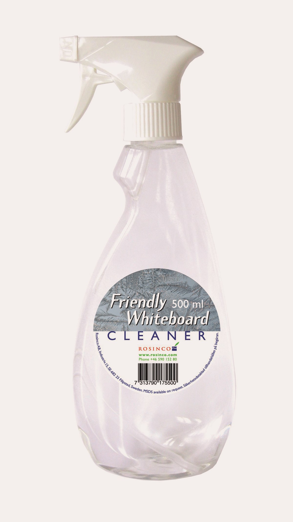 En mycket bra och effektiv rengöringsvätska för whiteboardtavlor. 500 ml flaska med spraymunstycke.