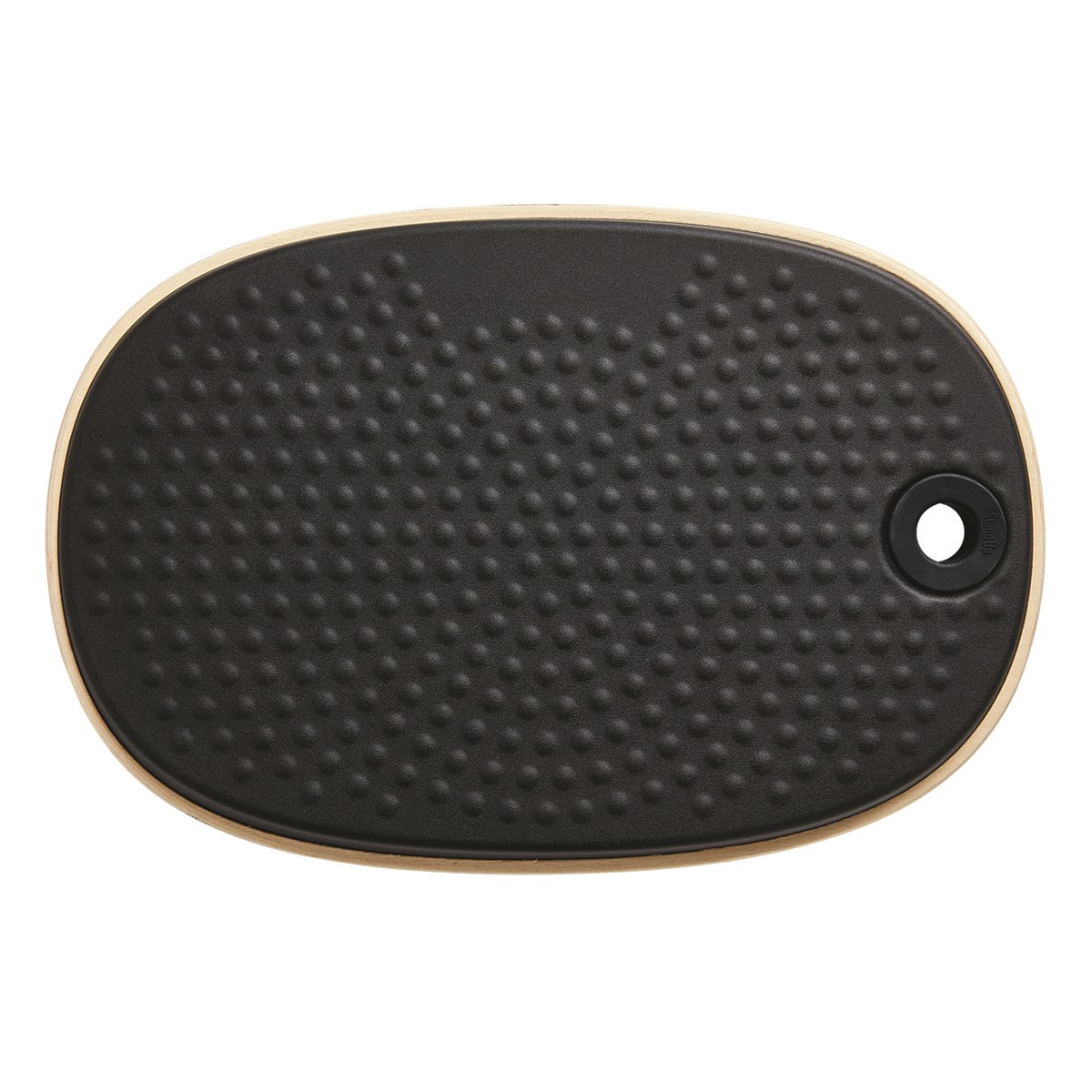En balansbräda för dig som vill stå aktivt. Genom att använda balansbrädan gör du det lätt att hitta balanspunkten i kroppen och du hittar en naturlig kroppshållning. Vippar behagligt, enbart i sidled - vilket minskar risken för att tippa ner på hälarna. Balansbrädan gör att du kan stå längre stunder då lite rörelse kan upplevas mindre uttröttande än stillastående. Mattan på brädan är gjord i avlastande polyuretanskum med ett bubbelmönstrat ytskikt i vinyl som stimulerar blodcirkulationen. En öljett gör att du kan hänga upp balansplattan då den inte används. Mått: 50 x 34,4 x 5,8 cm.