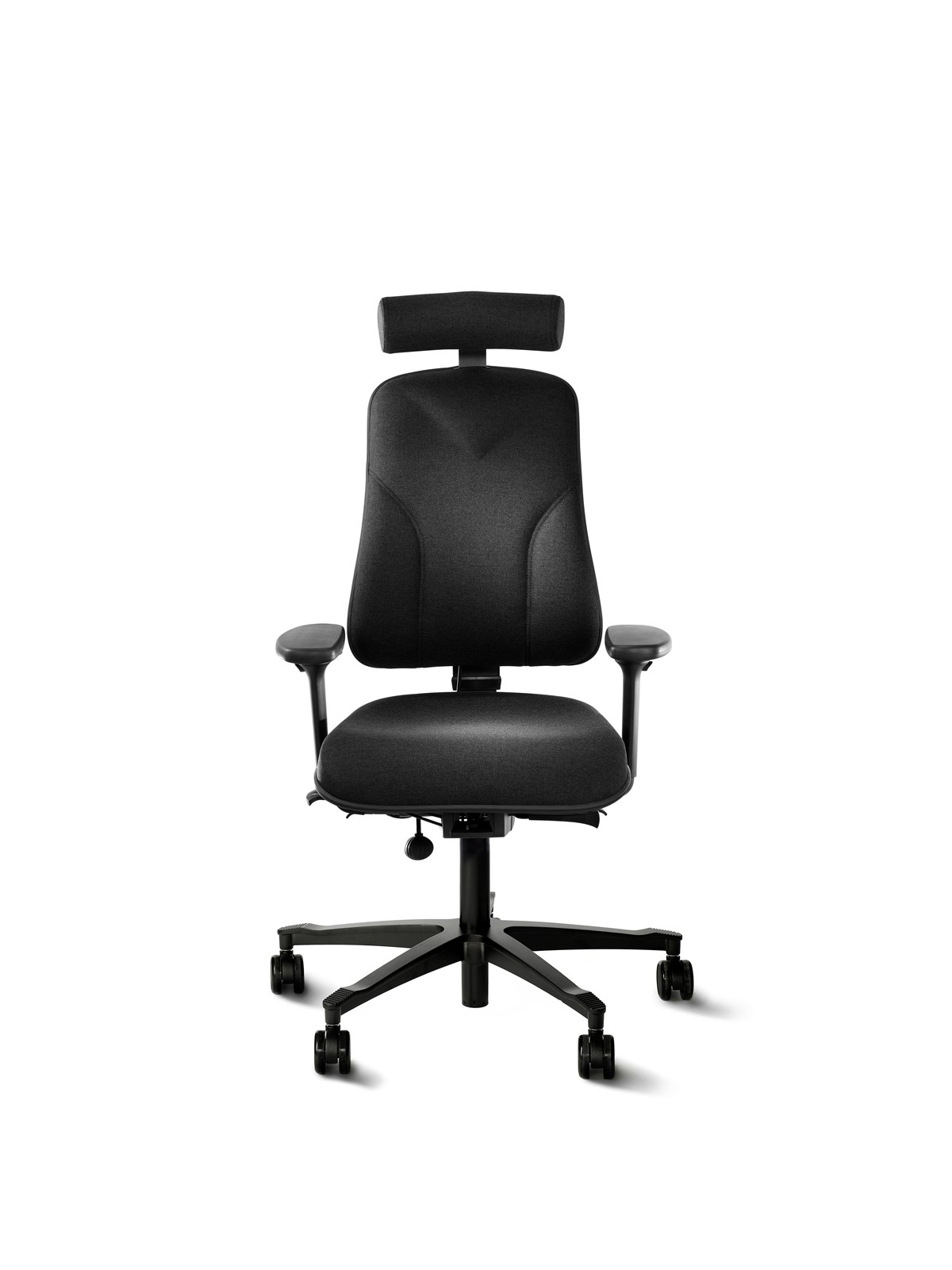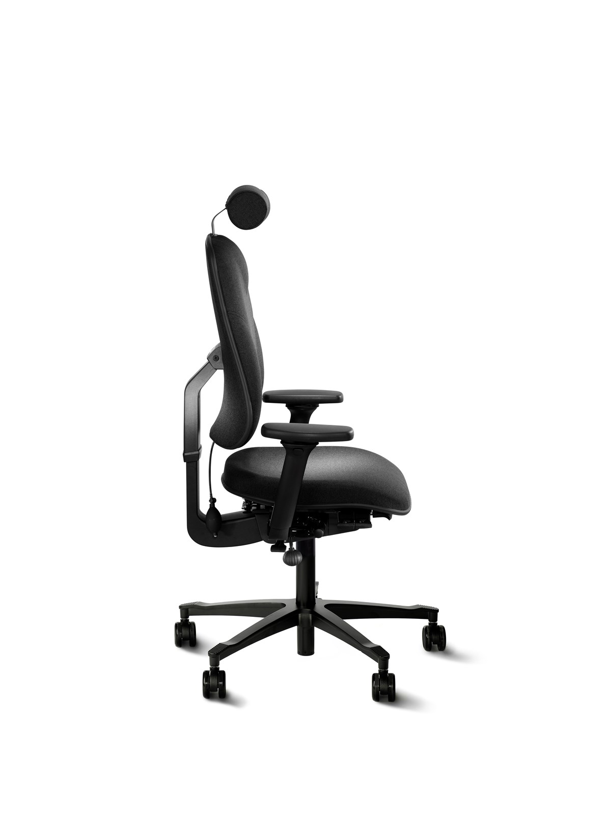 En lite större stol med bredare och djupare sits. Unikt svankstöd tack vare den flexibla ryggen. Vinklingsbar sits, balanserad och låsbar gunga för bästa komfort. Sitsdjupsjustering. Hjul för hårda golv. Rygg: 44 x 54 cm. Sits b x d: 46 x 49 cm. Sitthöjd: 40–57 cm. Tyg: Fame. Armstöd och nackstöd är tillval.