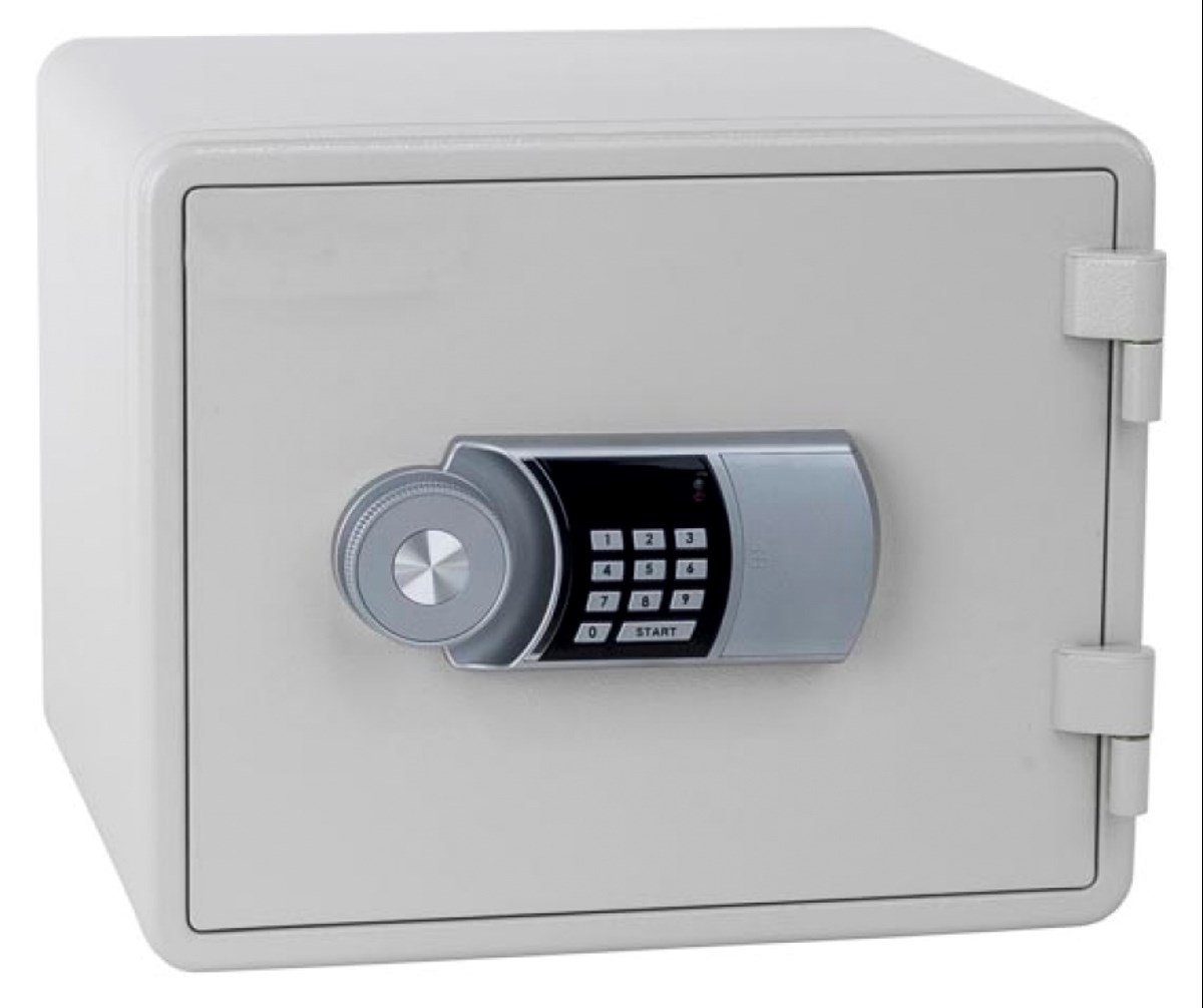 Ett mindre dokumentskåp med elektroniskt kodlås. Brandklass 60 P enligt Nordisk test (NT Fire 017) vilket innebär att inneliggande handlingar är skyddade vid brand. Utrustat med utdragbar låda och förberett för förankring i golv. Levereras som standard i vit färg men kan även fås i färgerna svart, blå, grön och röd.