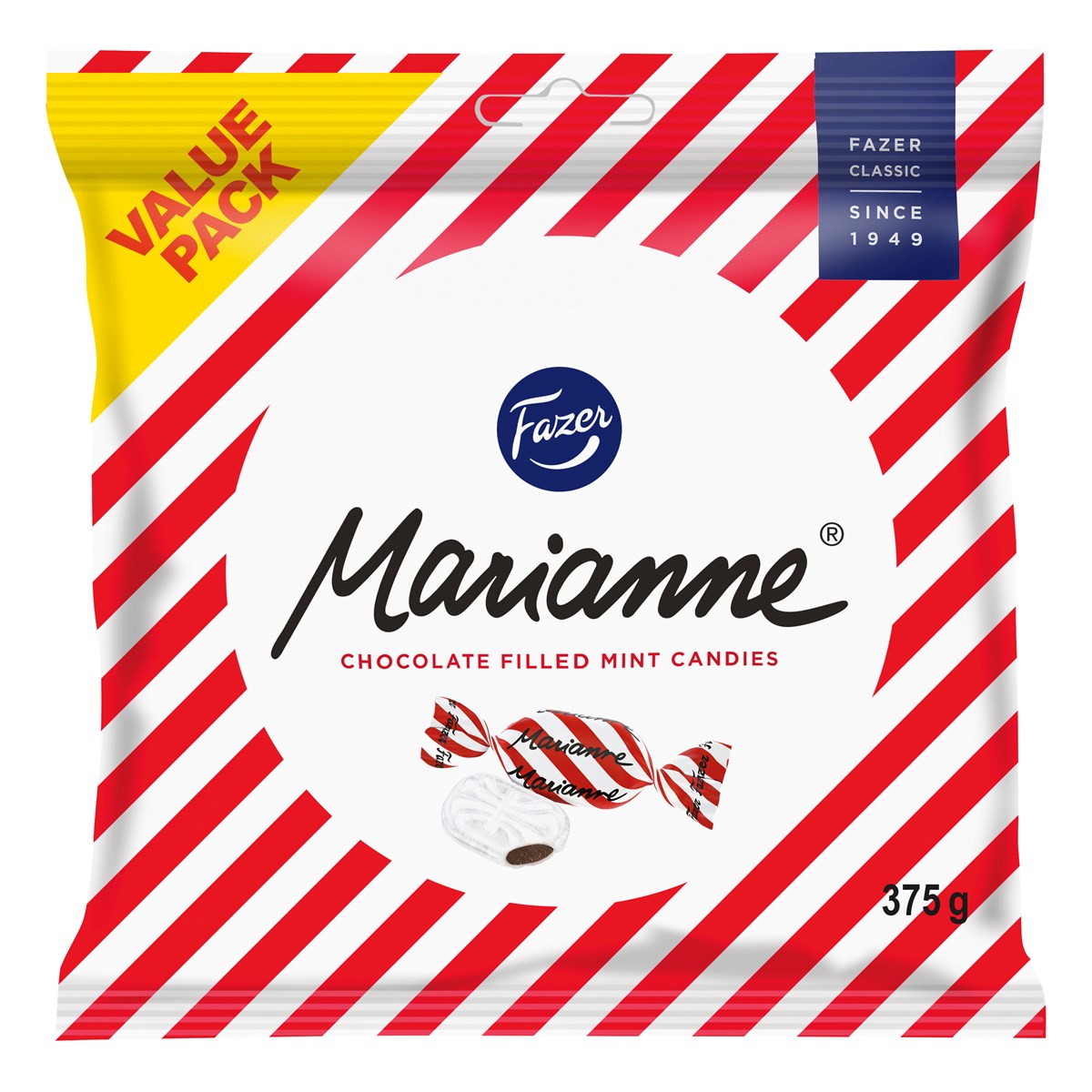 Fazers rödvita klassiker som får alla chokladälskare på fall. Marianne är godis med ett skal med smak av pepparmynta samt en underbar chokladfyllning.