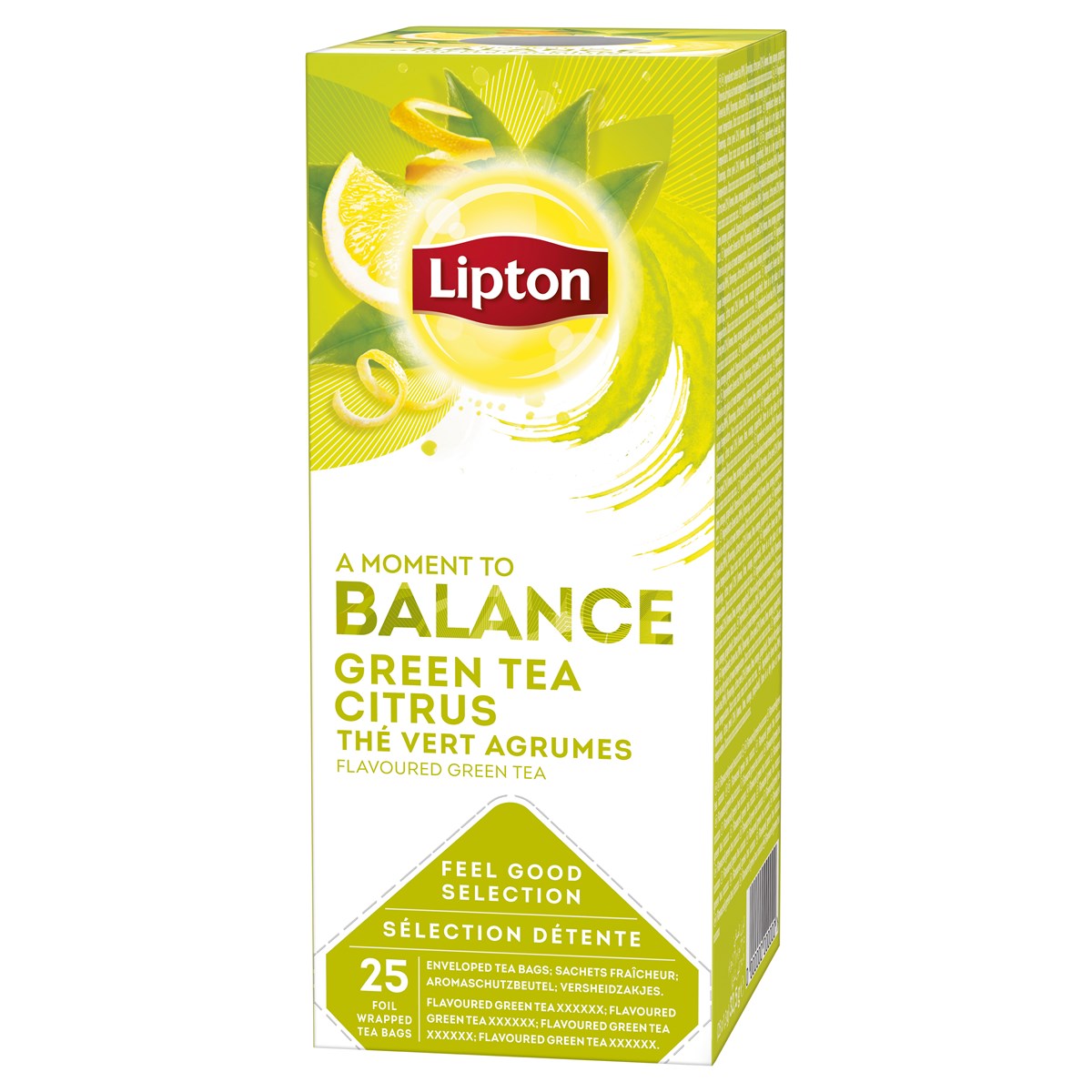 Gott och aromatiskt grönt te kombinerat med en frisk smak av citrusfrukter. Te för avkoppling och inre frid. Varje tepåse är insvept i folie för att hållas fräsch och för att skydda arom och fukt. Teet skördas på Rainforest Alliance-certifierade odlingar. 25 påsar/förp. 6 förp./kartong.