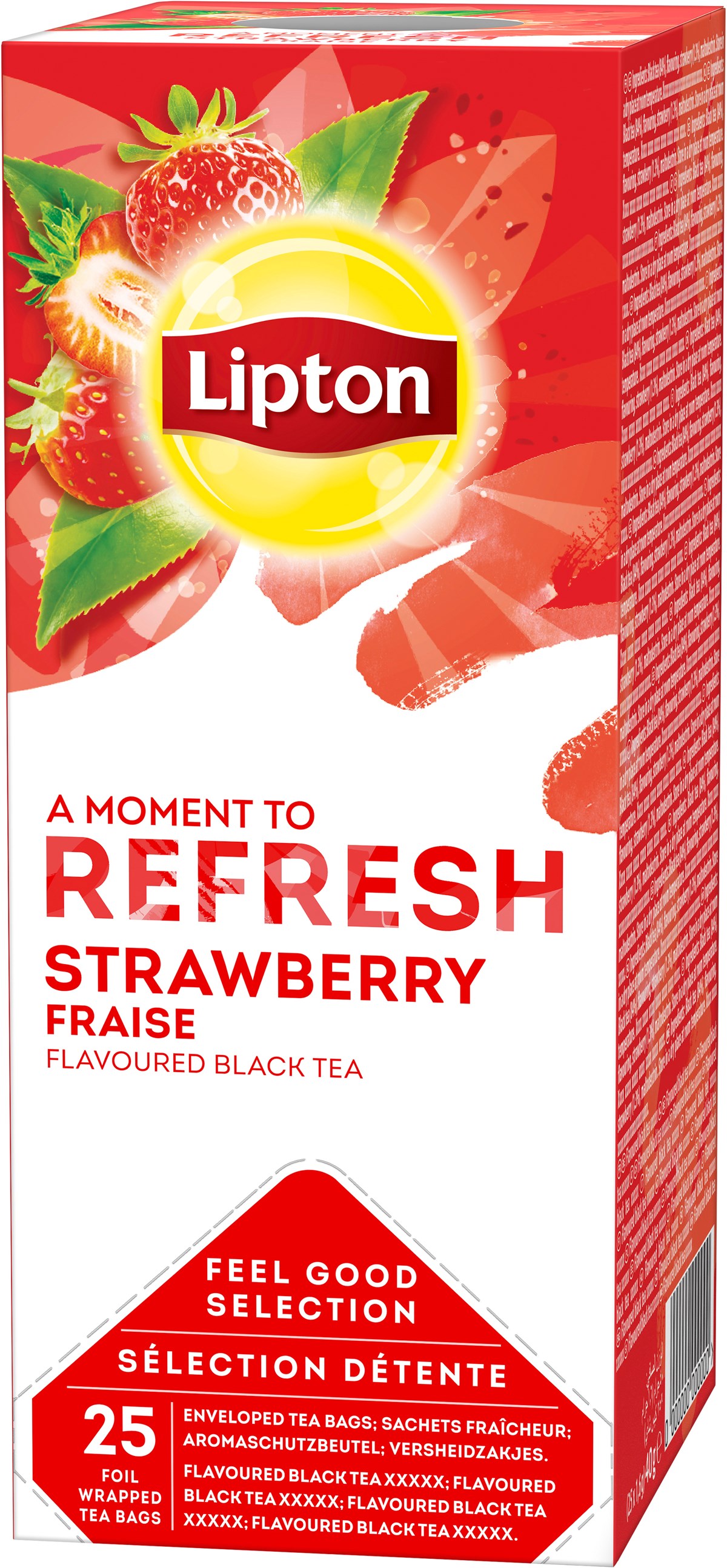 Ett svart te med smak av solmogna jordgubbar. Varje tepåse är insvept i folie för att hållas fräsch och för att skydda arom och fukt. Teet skördas på Rainforest Alliance-certifierade odlingar. 25 påsar/förp. 6 förp./kartong.