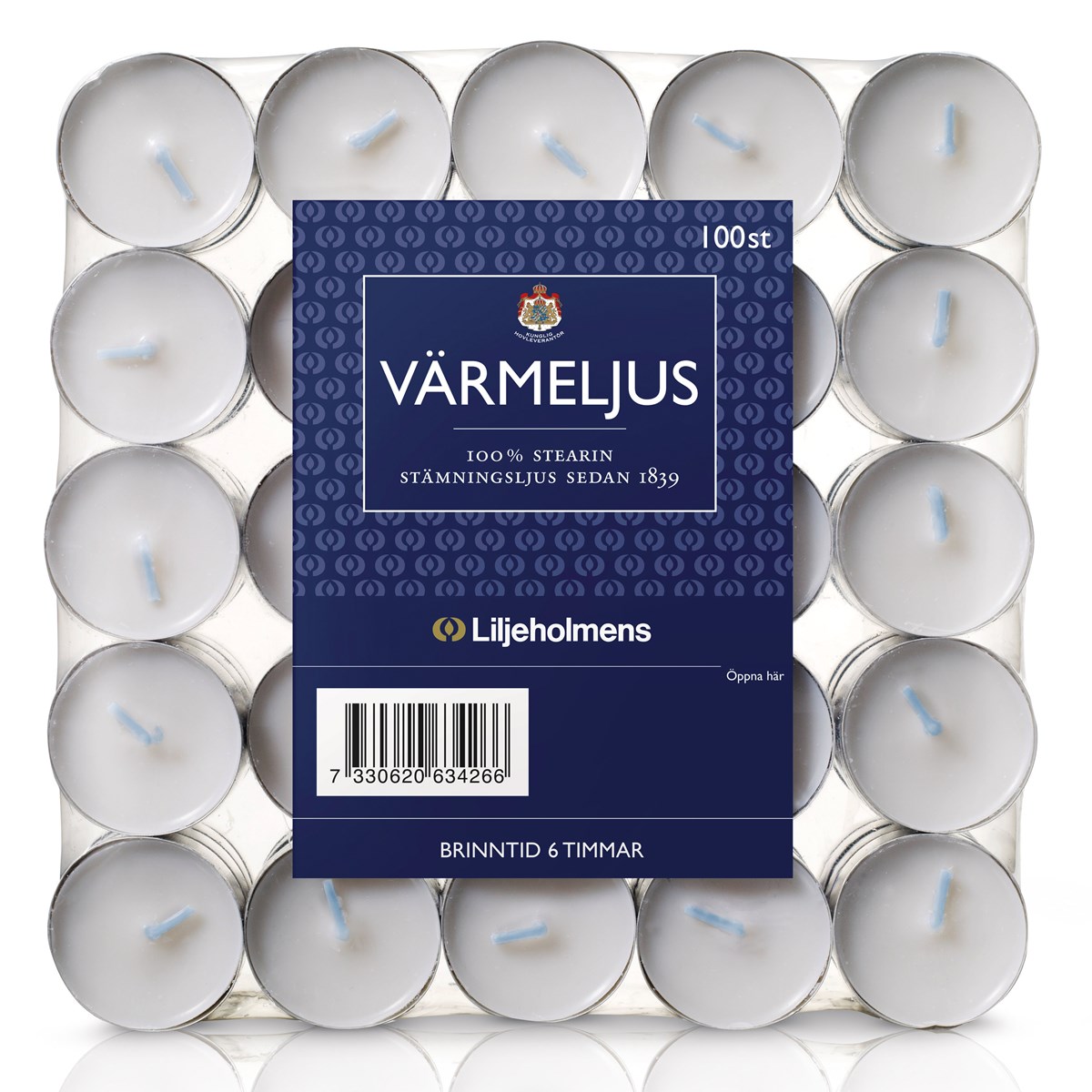 Värmeljus med 6 timmars brinntid. Tillverkade i 100% stearin. Ø 38 mm, höjd 19 mm. 100 st/förp.