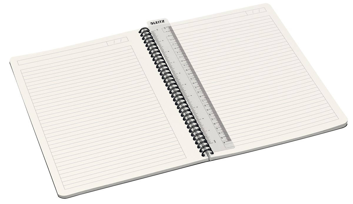 Spiralbundet block med omslag i tålig PP. 90 g papper med hög opacitet och med en speciell yta som ger en bra skrivyta utan kladd. Inramad linjering med titel och datumlinje i ovankant för bättre organisering av dina anteckningar. Löstagbar linjal som även kan användas som bokmärke. 90 linjerade blad. Ohålat. A4-format.
