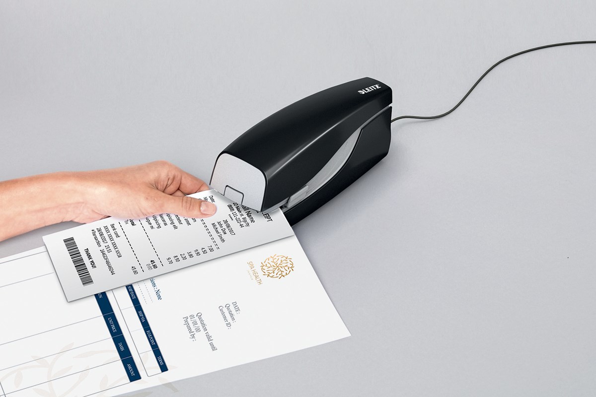 Snabb och enkel enhandshäftning av upp till 20 ark 80 g papper. Flat Clinch-teknik ger upp till 30% mer utrymme i pärmen. Justerbart införingsdjup: 10–20 mm. Diagonal häftning är möjlig. Levereras med nätadapter och 200 st häftklammer (E2). 3 års garanti.