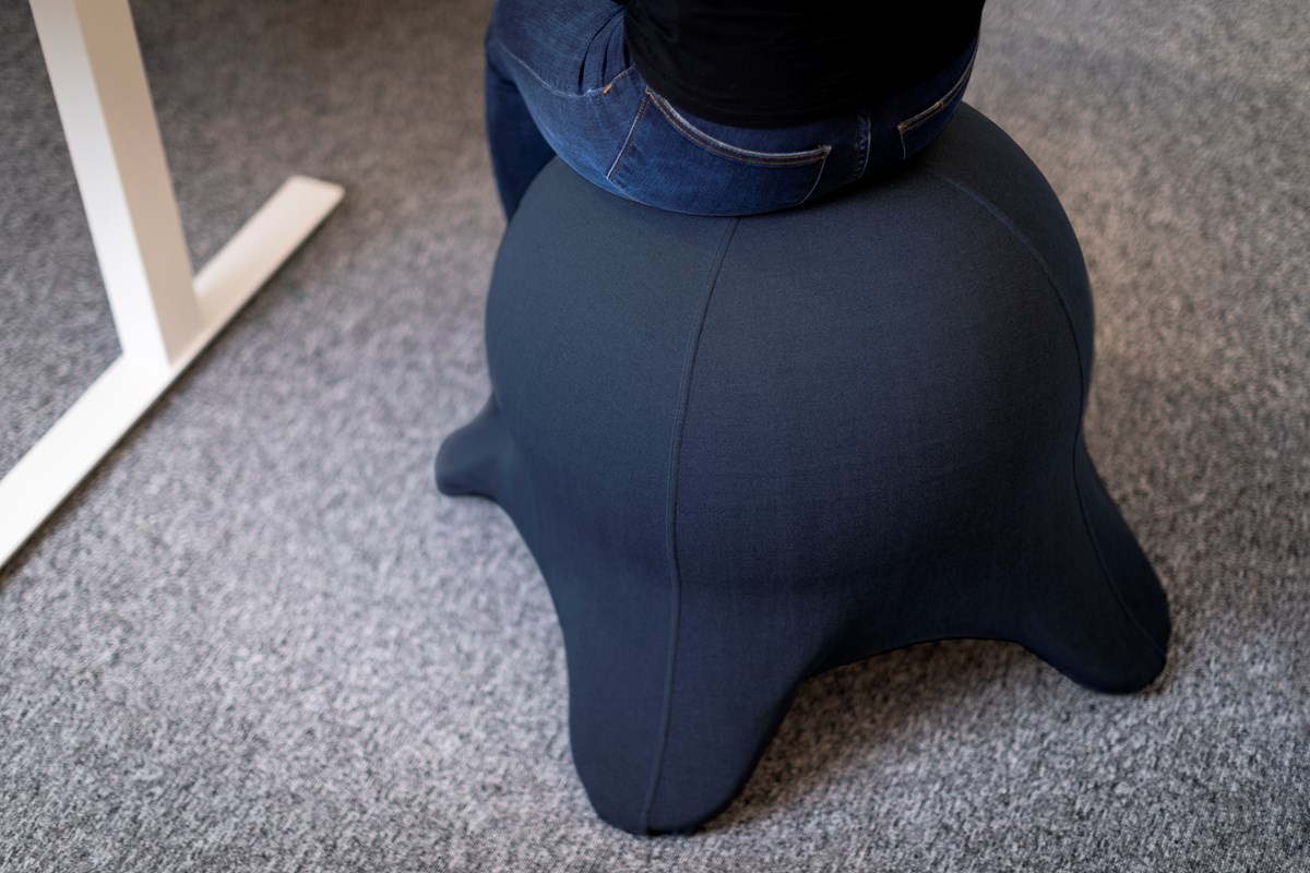 En inbyggd balansboll i snygg och lekfull design med en ställning och fyra fötter. Hjälper till att träna upp balans och koordination samtidigt som den är mjuk och skön att sitta på. Filttyg.