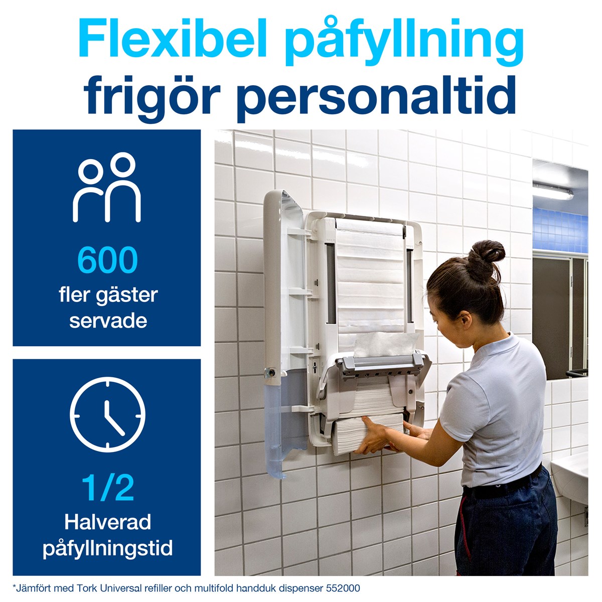 250 % högre kapacitet med 2 100 pappershanddukar i en slimmad behållare