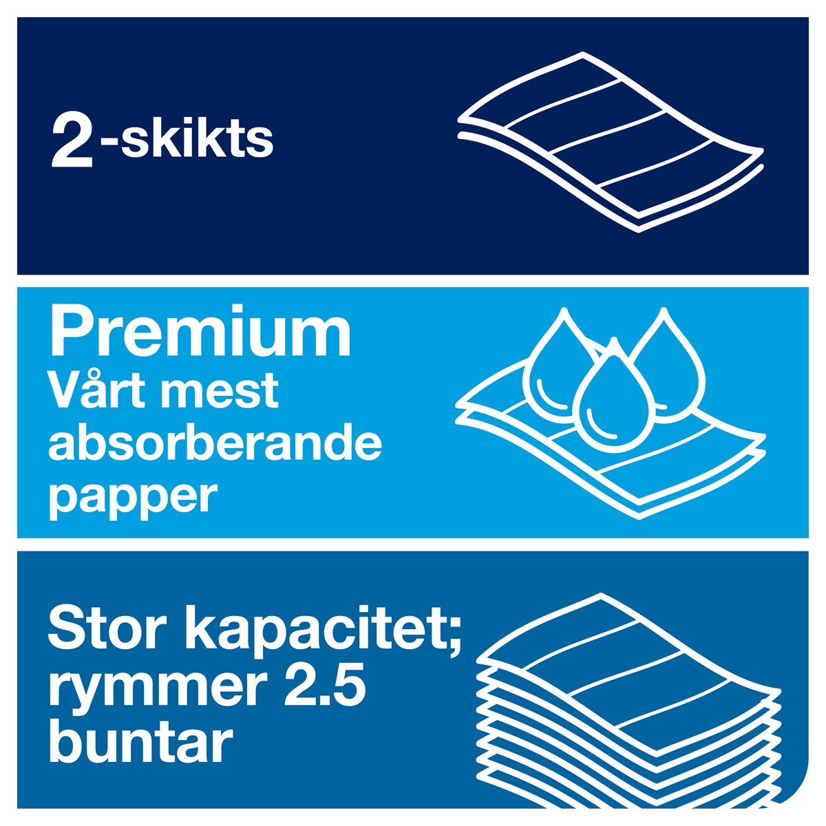 Quick Dry-papper - för effektivare avtorkning med mindre avfall Dekorativt, blått mönster för ett bra visuellt intryck Perfekt för toalettrymmen med medelhög besöksfrekvens EU-miljömärkning som garanterar en lägre miljöpåverkan än jämförbara produkter ISEGA-märkning, godkänner lämpligheten för kortvarig kontakt med livsmedel