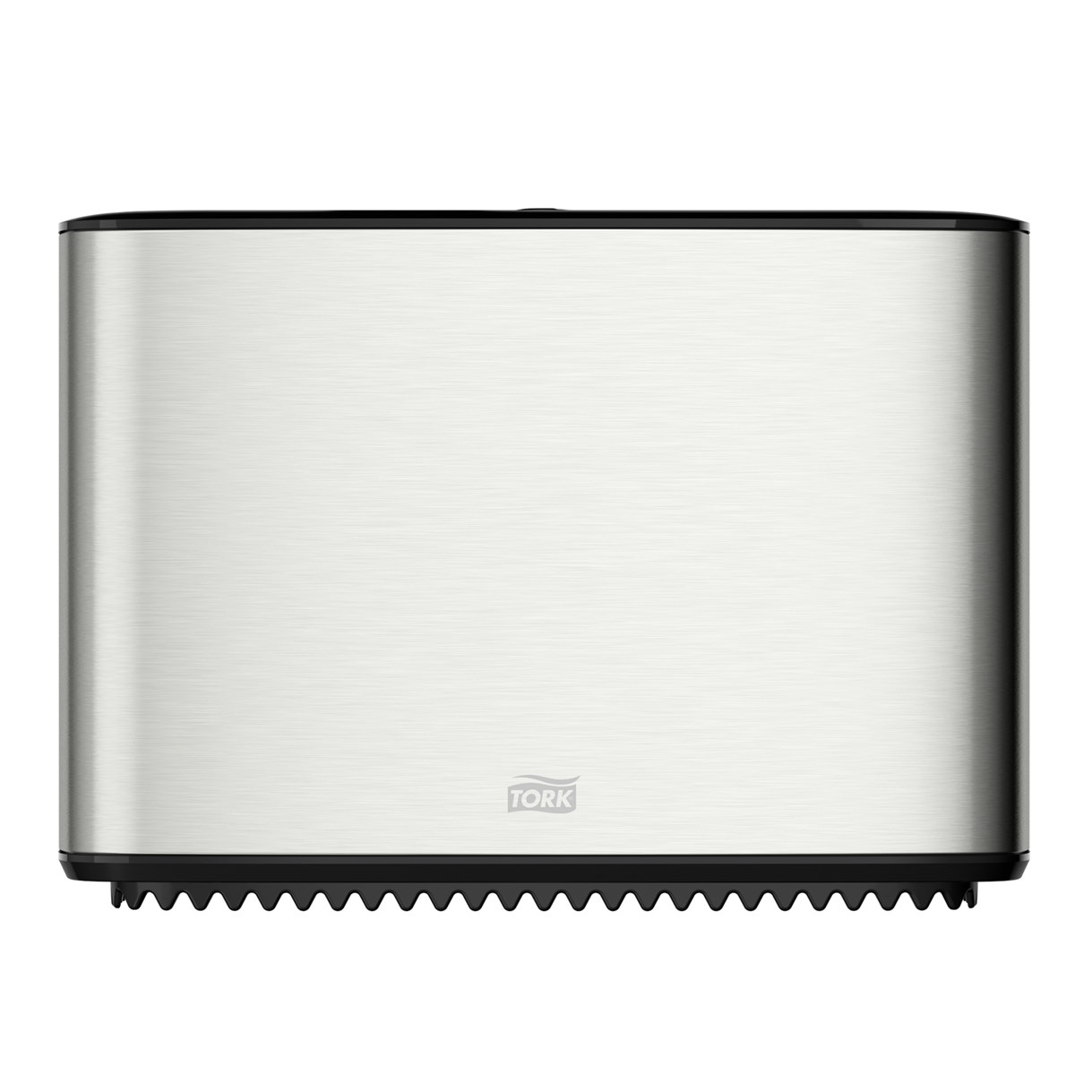 Modern och stilren design i rostfritt stål Hög kapacitet som minskar underhållstiden Sluten dispenser för förbättrad hygien Optimal rullbroms och rullhållare för restpapper som minimerar avfallet