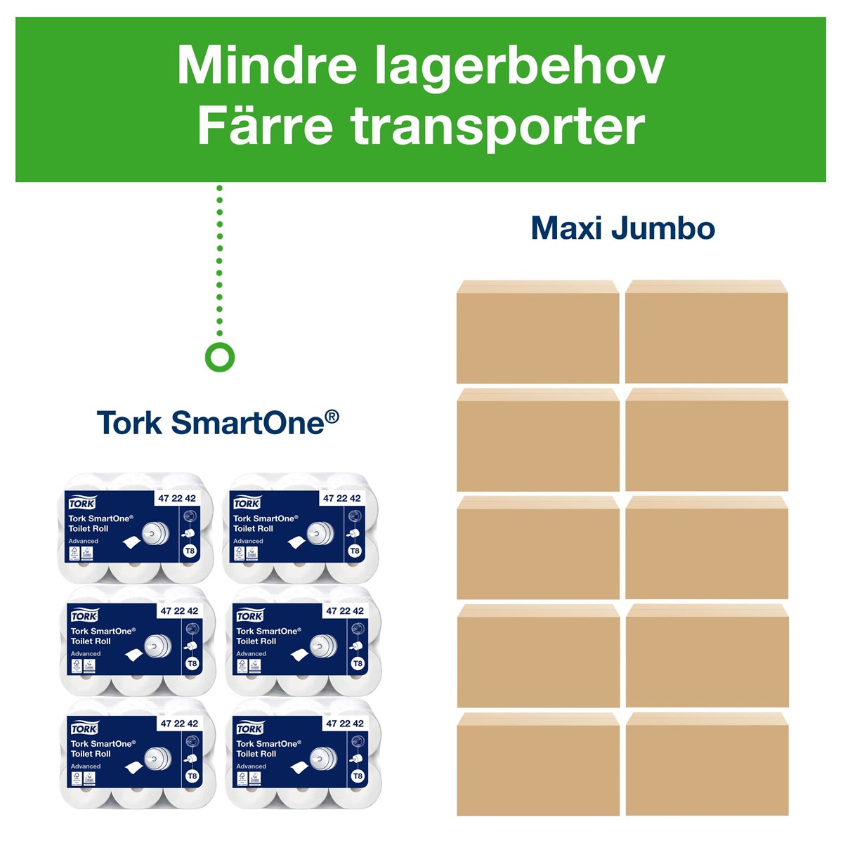Hög kapacitet för kostnadseffektivitet och minskat underhåll Bidrar till förbättrad hygien då gästerna endast vidrör det papper de använder SmartCore gör påfyllningen snabb och enkel Effektiv upplösning minskar risken för stopp i avloppet