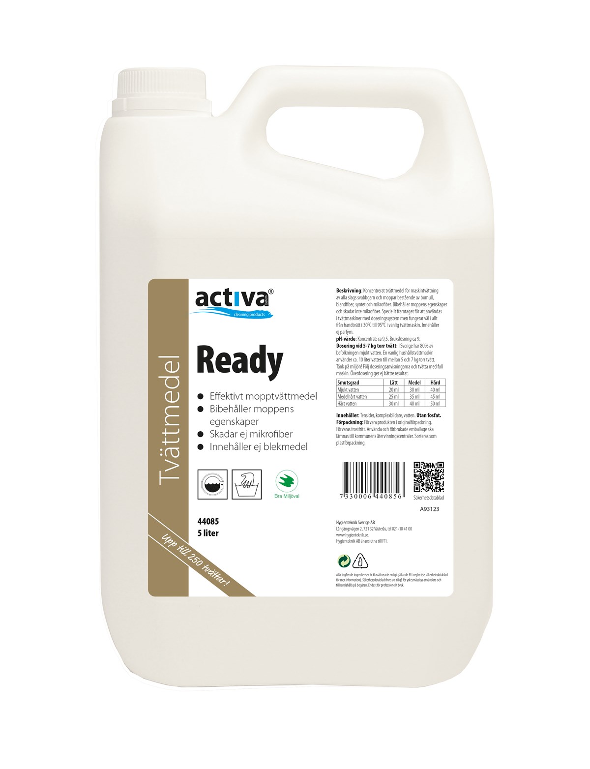 Koncentrerat, parfymfritt tvättmedel för maskintvättning av alla slags svabbgarn, bomulls-, blandfiber-, syntet- och mikrofibermoppar. Speciellt framtaget för att bibehålla moppens egenskaper och inte skada mikrofibrerna. Utvecklat för att användas i tvättmaskiner med doseringssystem, men fungerar väl i allt från handtvätt i 30°C till 95°C i vanlig tvättmaskin.